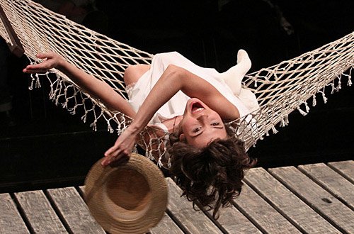 Все эти золотые глупости, как и прочие не слишком удачные досочинения, хочется счистить с «Хорошенькой», как корку с апельсина, чтобы осталась сама сердцевина спектакля - история о кудрявой, восторженной и доверчивой Шурочке, которую прелестно играет Клавдия Коршунова. И тут становится видно, что Половцева действительно ученица Женовача, что ей интересен даже такой весьма вторичный текст, за которым она находит живую и трогательную историю. Что она умеет внимательно этот текст разобрать и дает актерам прекрасные возможности для игры.