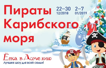 Яркие музыкальные номера, фехтовальные бои, колорит морской романтики — всё это в новогодние праздники в Большом зале Дома кино! На сцене будет построен настоящий пиратский корабль! Сразу после представления дети получат сундучки с сокровищами – большие подарки с вкусными конфетами от московских кондитеров.