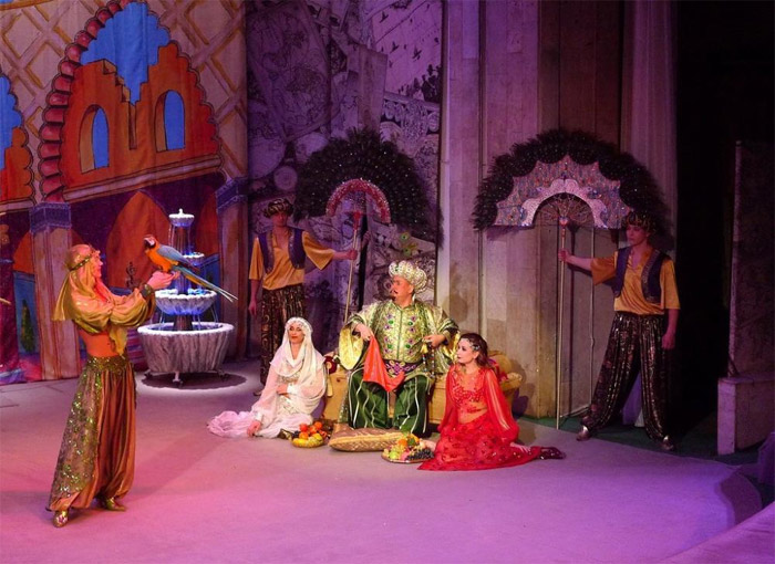 Театр со столетней историей чтит традиции и творчески подходит к созданию спектаклей и подбору актеров. Образ каждого персонажа продуман до мелочей. Оригинальные костюмы из великолепных тканей, по-восточному расшитые мерцающими нитками и камнями, лишь дополняют атмосферу праздника. Настоящим волшебником в ней станет Юрий Юрьевич Дуров в образе Деда Мороза. Именно ему предстоит зажечь елку, которая вырастет прямо на глазах. А какой замечательный снег и дымные мыльные пузыри будут сыпаться в конце шоу!