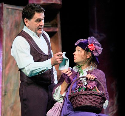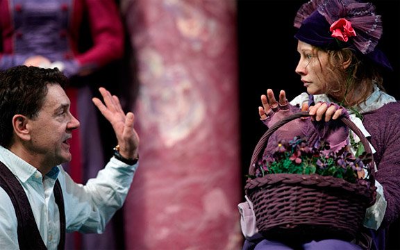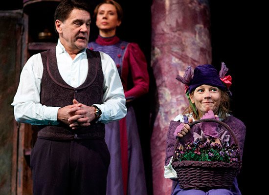 Спектакль Пигмалион в театре Современник – яркая и красочная постановка, которая надолго запомнится каждому зрителю. Он был создан по мотивам литературного произведения известного британского писателя, лауреата Нобелевской премии Джорджа Бернард Шоу. К оригинальному творчеству талантливого драматурга приковано внимание читателей всего мира. Спектакли по его пьесам представляли к показу в разных странах, на самых выдающихся театральных подмостках. Теперь постановка Пигмалион в Современнике по легендарному произведению Бернард Шоу украшает и репертуар знаменитого московского театра. Благодаря талантливой работе режиссера Галины Борисовны Волчек, образы героев получились очень глубокими и искренними. Поэтому на постановку Пигмалион в Современнике билеты пользуются повышенным спросом. Сценическое оформление представляет собой с одной стороны – грязную лондонскую улицу, а с другой – роскошный теплый профессорский дом. Все герои спектакля Пигмалион одеты в костюмы лиловой гаммы, что ассоциирует их с цветами. В нем стоят мраморные колонны, сверкают драгоценные камни, грациозно расположены кушетки.