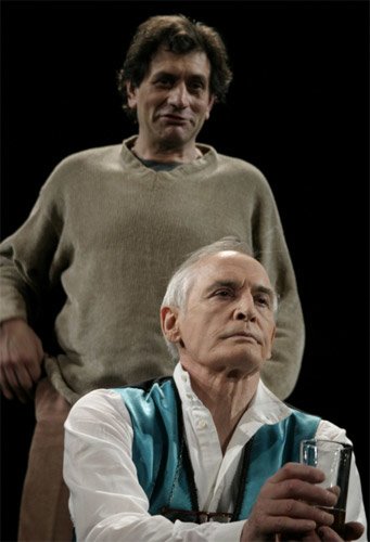 Первые звуки спектакля — шум прибоя, обозначающий место действия. Это остров в норвежском море, где уединился знаменитый писатель Абель Знорко.