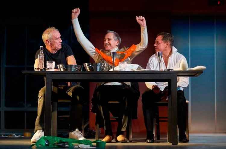 Актерский состав постановки радует публику своей блистательной игрой. В роли Кирилла Цандера выступает актер Игорь Скляр. У публики есть редчайшая возможность увидеть знаменитого актера на театральных подмостках, ведь он до сегодняшнего момента не выступал в театре уже три десятилетия. Роль второго друга Михаила Громова прекрасно исполняет Сергей Гармаш. Помимо этого, в спектакле также участвуют Александр Кахун, Николай Попков, Чулпан Хаматова. Любимая многими зрителями актриса тоже принимает участие в постановке, но зрители не увидят артистку на самой сцене.