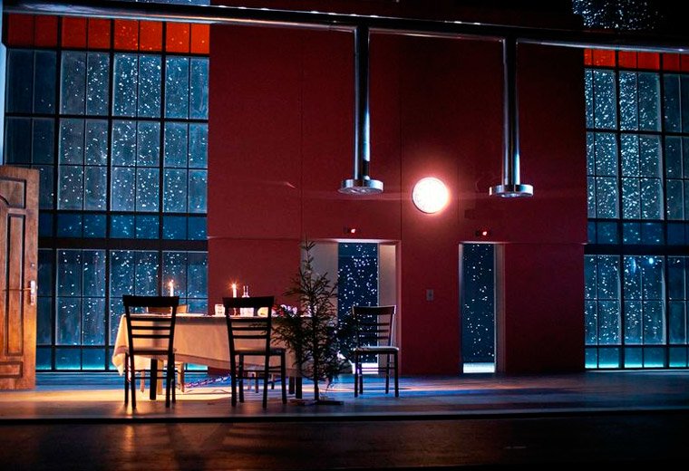 Спектакль театра Современник С наступающим и зрители, и критики восприняли очень доброжелательно. Сама идея спектакля С наступающим в Современнике принадлежит известным и любимым всеми российскими зрителями актерам – Игорю Скляру и Сергею Гармашу. У этих двух старинных друзей в свое время были совместные кинопроекты, но вот в театре поработать вместе удалось только сейчас. Кстати, Скляр в Щукинской школе был одноклассником Овчинникова, поэтому драматург и актеры понимали друг друга с полуслова. Идея спектакля С наступающим Скляра и Гармаша пришлась по душе худруку Галине Волчек, поэтому премьерный показ не заставил себя долго ждать. Сценическим оформлением спектакля С наступающим в театре Современник занимался художник Александр Боровский. Именно он сделал из сцены лестничную клетку элитного дома, за окнами которого красиво падает снег.
