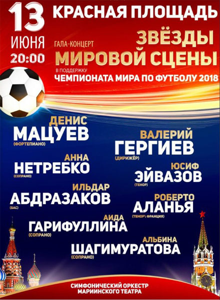 Гала - концерт к ЧМ по футболу. Гергиев, Мацуев, Нетребко и др. в Красная площадь, афиша