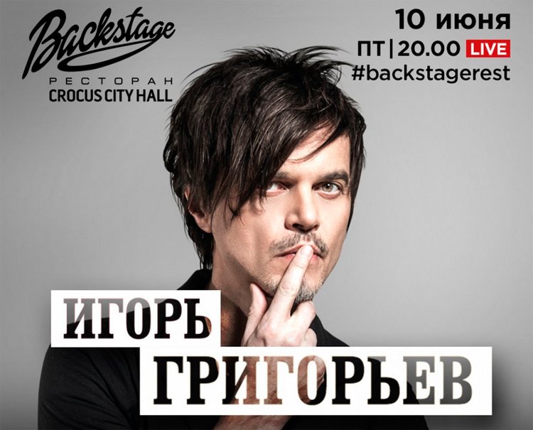 Игорь Григорьев представит свои самые популярные песни на концерте в ресторане Backstage, и будьте готовы, что, по словам критика Андрея Бухарина, на ваши головы обрушится бурлеск, сплав высокого и низкого, «песни в стиле кабаре, шансона, самбы, цыганщины — один сплошной жестокий романс». Игорь Григорьев – явление сам по себе, а его концерт – яркое и впечатляющее зрелище.