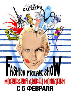 Остроконечные бюстгальтеры и мужские юбки, клипы Мадонны и Милен Фармер, фильмы Педро Альмодовара и Питера Гринуэя, слом стереотипов и разрушение границ – все это объединяет одно культовое имя - Жан-Поль Готье. Эксцентричный, скандальный, провокационный, остроумный, L’enfant terrible высокой моды приезжает в Россию и привозит с собой свое Fashion Freak Show. Премьера его состоялась в сентябре 2018 в кабаре «Фоли-Бержер» и стала беспрецедентной как для парижских подиумов, так и для подмостков. Удивительная смесь танцевального ревю и модного показа, под музыку от диско до панка, с участием актеров, танцовщиков, артистов цирка - постановка представляет собой своего рода исповедь Жана-Поля Готье. Специально для нее кутюрье создал десятки костюмов.