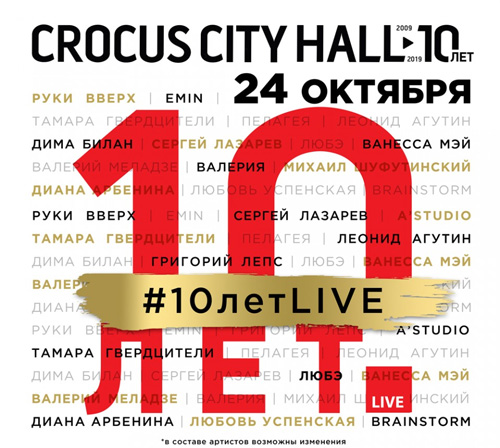Десятилетие Крокус Сити Холла отметят главные артисты страны 24 октября |