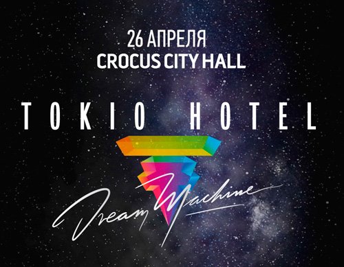 Tokio Hotel отправляется в мировой тур Dream Machine. 26 апреля в Крокус Сити Холле группа исполнит свои главные хиты и уделит особое внимание новому звуку и новому материалу.