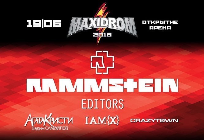 Участники MAXIDROM 2016: RAMMSTEIN, EDITORS, АГАТА КРИСТИ (ВАДИМ САМОЙЛОВ), IAMX, СRAZY TOWN