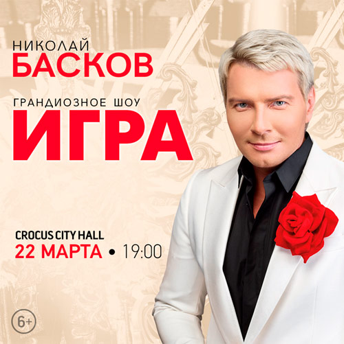 22 марта 2018 года Николай Басков представит в Крокус Сити Холле свою новую зрелищную концертную программу «ИГРА». Это театрализованное представление мирового уровня, созданное при участии лучших специалистов