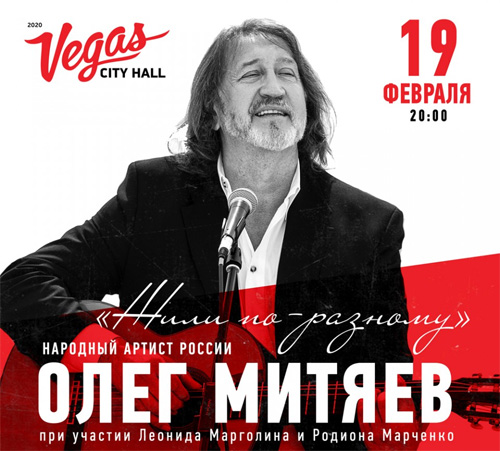 Народный Артист России Олег Митяев представит новый альбом «Жили по-разному» на сольном концерте 19 февраля в Вегас Сити Холле.