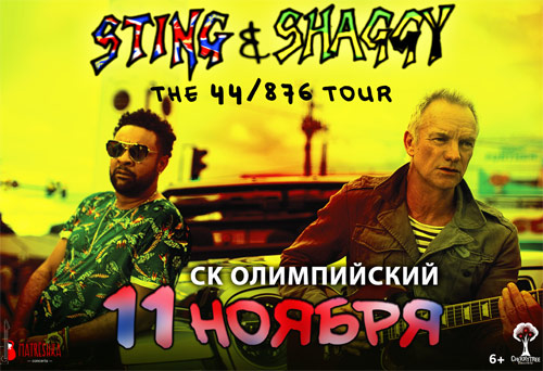 Продолжением европейского тура Стинга и Шегги и тура по Северной Америке станут невероятно динамичные шоу в четырех российских городах – Екатеринбурге, Казани, Санкт-Петербурге и Москве. Двухчасовое музыкальное путешествие названо одним из самых ожидаемых концертов года: два известнейших музыканта представят в России песни из недавно вышедшего альбома «44/876» (A&M/Interscope Records), а также исполнят любимые всеми хиты - "Every Breath You Take", "Englishman In New York", "Message In A Bottle”, “It Wasn’t Me”, "Mr. Boombastic" и "Angel”.