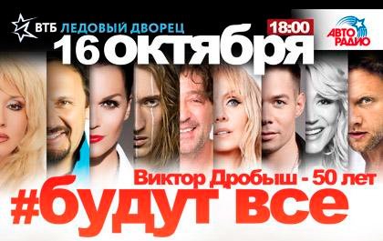 16 октября в ВТБ «Ледовый Дворец» состоится триумфальный юбилейный концерт «Хиты и звезды», посвященный 50-ти летию заслуженного артиста РФ, продюсера и композитора Виктора Дробыша.