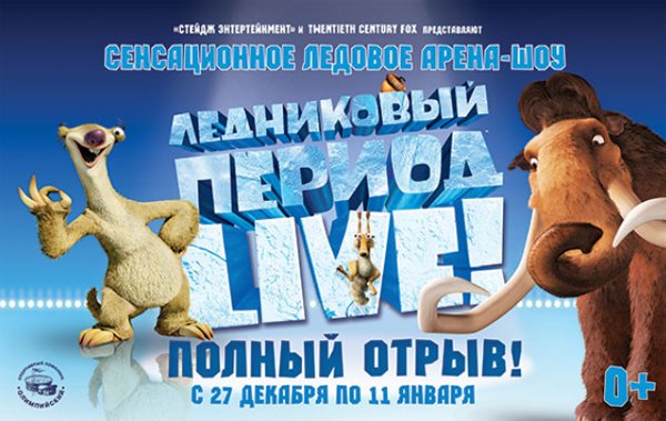 Крупнейшая в России театральная компания «Стейдж Энтертейнмент» готовит столичной публике грандиозный подарок на Новый год: 27 декабря в СК «Олимпийский» состоится московская премьера едва ли не самого масштабного арена-шоу в мире: «Ледниковый период Live!». Эта уникальная постановка двух мировых лидеров – компании «Стейдж Энтертейнмент» и корпорации «Двадцатый Век Фокс», сочетающая фигурное катание более сотни героев знаменитого мультфильма с цирковыми элементами, трюками каскадеров, пиротехническими эффектами и прекрасной голливудской 3-D анимацией. Сенсационное шоу будет демонстрироваться в Москве всего 10 дней – во время новогодних каникул!