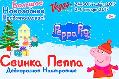 Будем рады видеть вас и ваших детей на нашем новогоднем представлении! Ваши дети будут счастливы провести зимний день в компании любимой Свинки Пеппа! Не проХрюкайте!