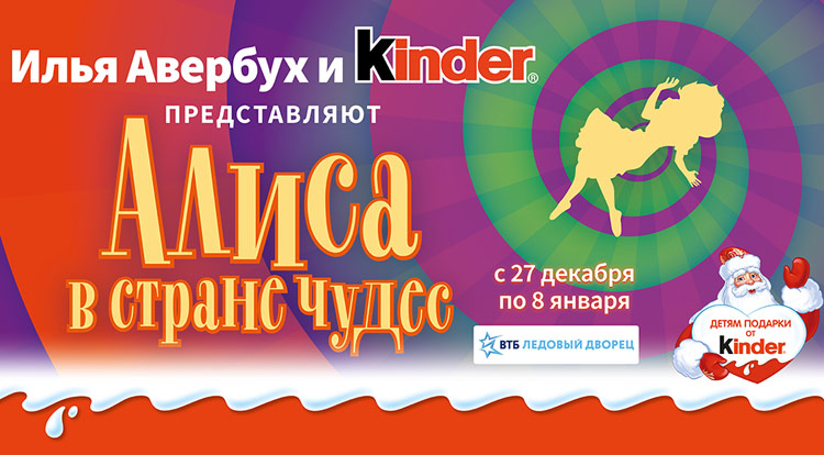 В дни новогодних каникул Продюсерская компания «Илья Авербух» и Kinder представляют новый масштабный проект – Новогодний спектакль для всей семьи «Алиса в стране чудес, который пройдет с 27 декабря 2017 года по 8 января 2018 года в Ледовом дворце ВТБ.