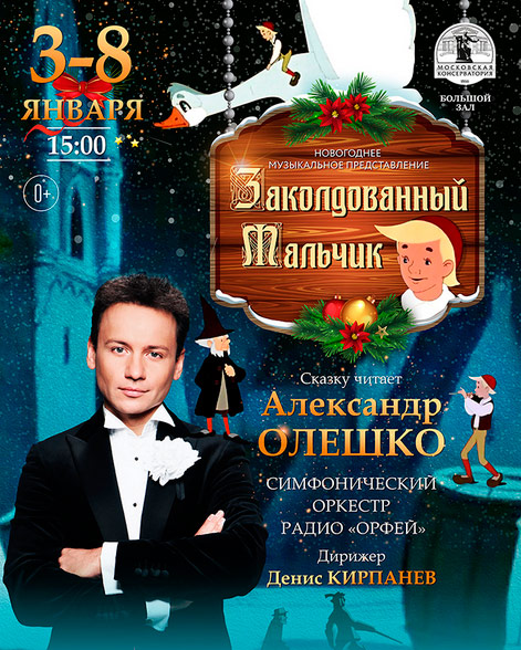 Новый год еще не скоро, но уже можно выбирать Подарки! Одним из традиционных новогодних сюрпризов станет музыкальное представление в Большом зале Московской консерватории. Это единственная «академическая ёлка» для детей и их родителей, на которой встречаются шедевры мировой детской литературы и классической музыки. Даты представления уже назначены: 3–8 января 2018 года. Сказку «Заколдованный мальчик» по мотивам легендарной книги Сельмы Лагерлеф «Чудесное путешествие Нильса Хольгерссона по Швеции» прочтет известный актер и телеведущий, заслуженный артист России Александр Олешко. Картины могучей северной природы, невероятного полета Нильса с дикими гусями и его удивительных приключений будут переданы средствами музыки. В исполнении Симфонического оркестра радио «Орфей» под управлением дирижера Дениса Кирпанева прозвучат фрагменты сочинений скандинавских классиков – Эдварда Грига и Яна Сибелиуса.